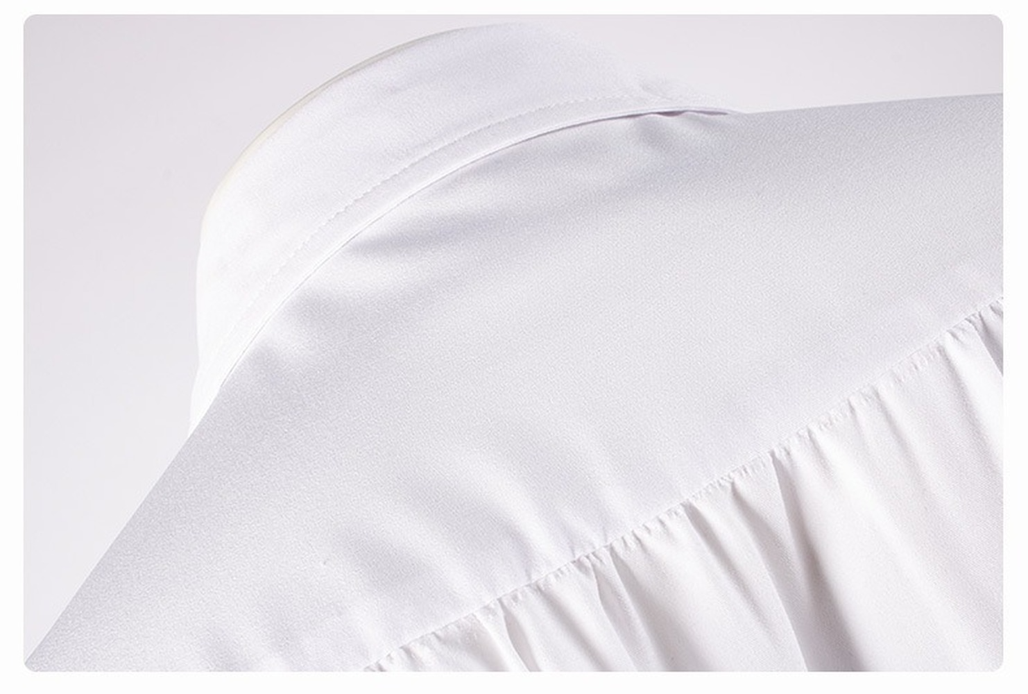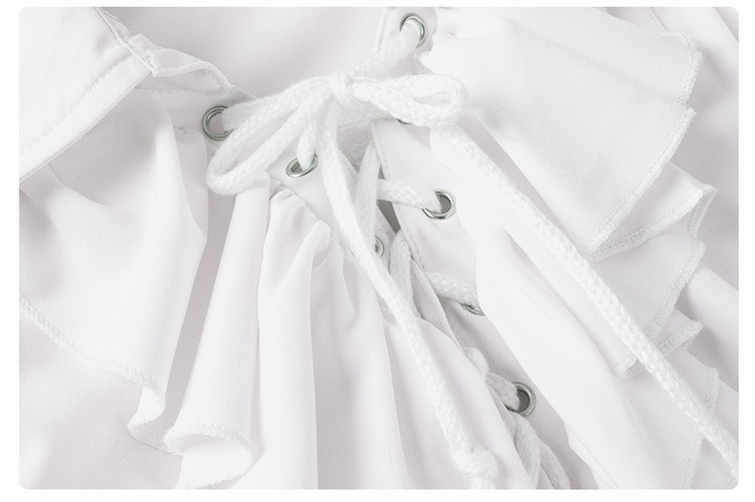 • Design: Long Sleeve, Flared Cuffs, Ruffle Front, Solid Color, Retro Style.