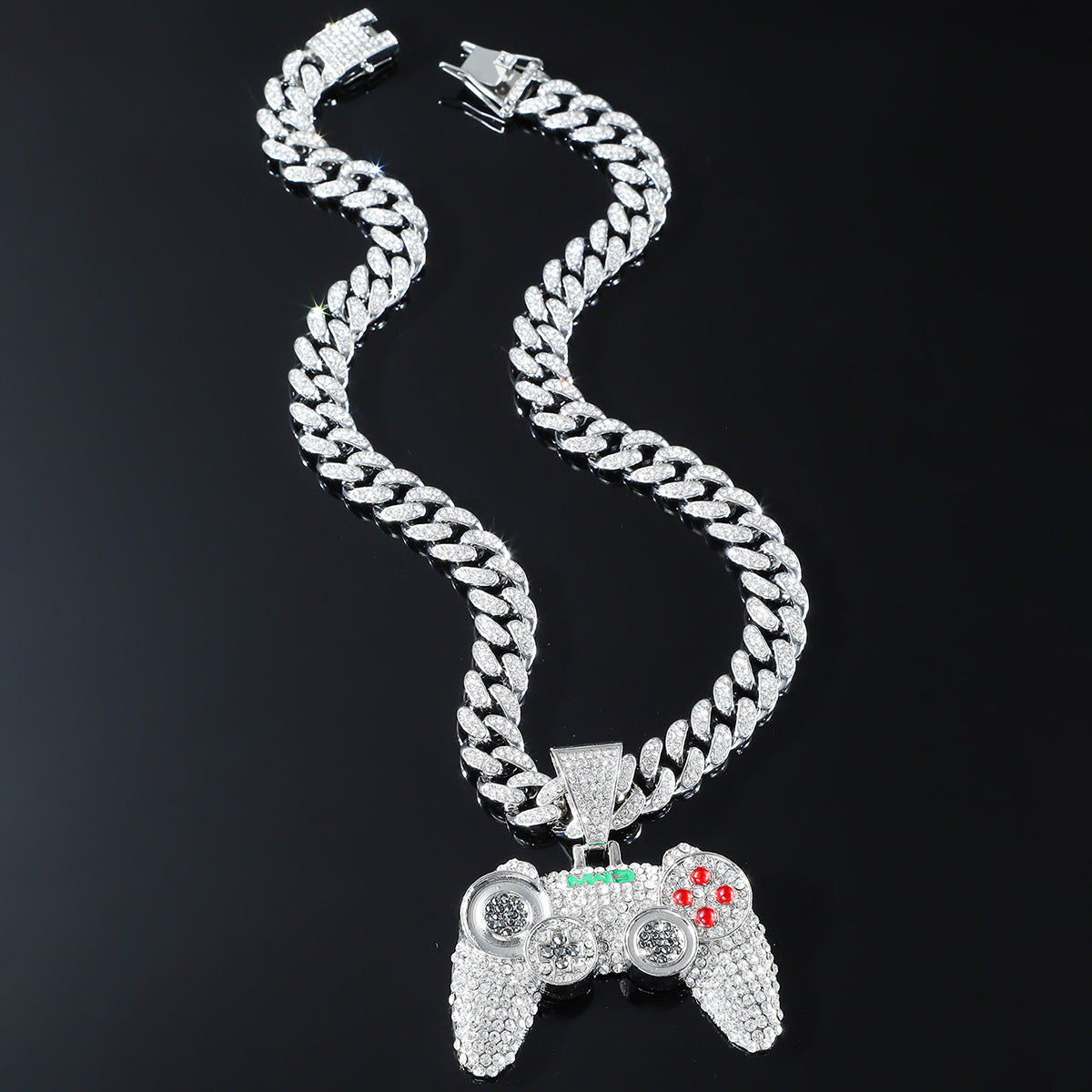 Hip hop Alloy Full Diamond Game Machine Pendant Cuban Chain Necklace, Nightclub Personality Dance Decorative