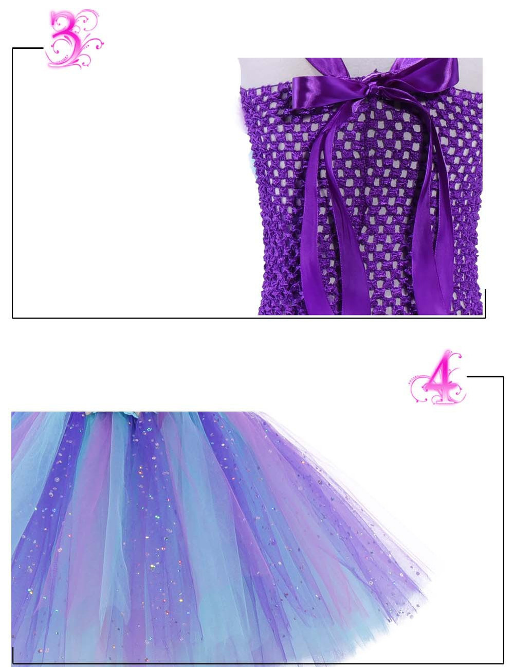 Girls Princess Mermaid Costume Kids Tutu Dress Party Birthday Fancy Dress Outfit