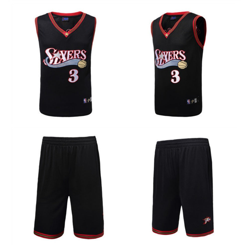 Iverson #3 Retro 76ers Breathable Basketball Jersey Pants Set Embroidery Youth Size- Adult Size