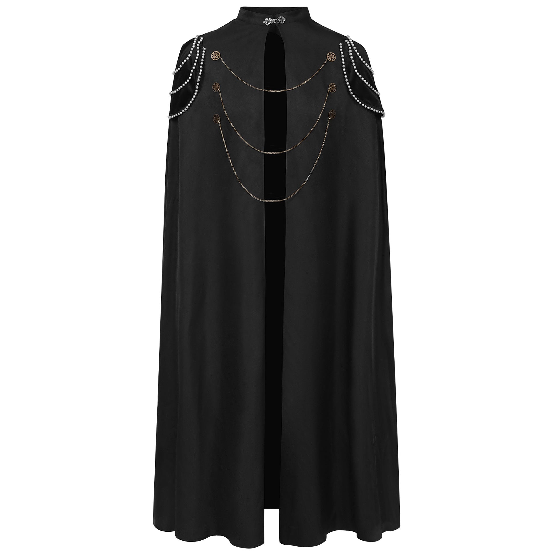 Medieval European Royal Cloak with Padded Shoulders: Vintage Beaded Gear Chain Hooded Cape for Men and Women - Performance Costume