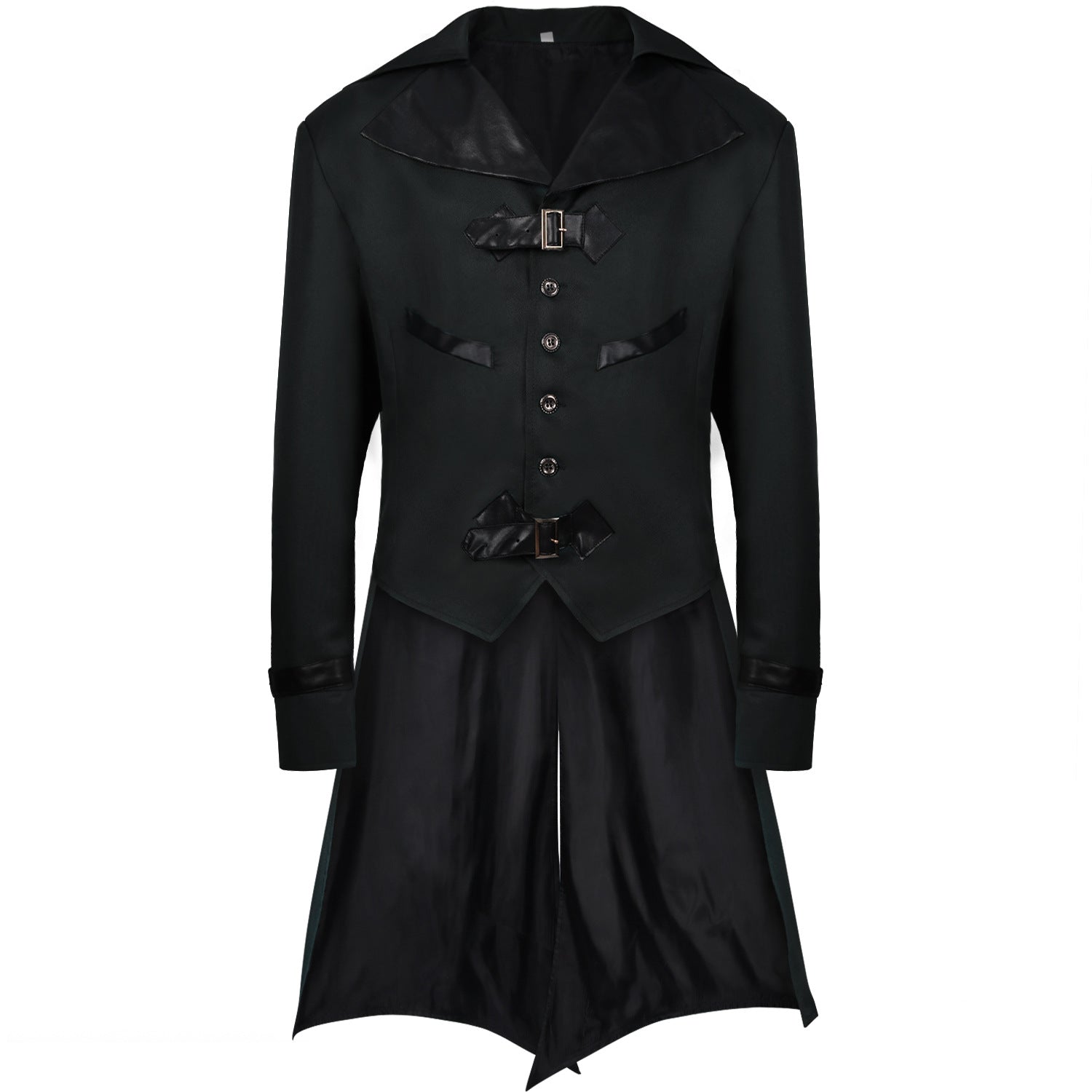 Men Gothic Victorian Tailcoat Steampunk Vintage Coat Jacket Halloween Cosplay Costume
