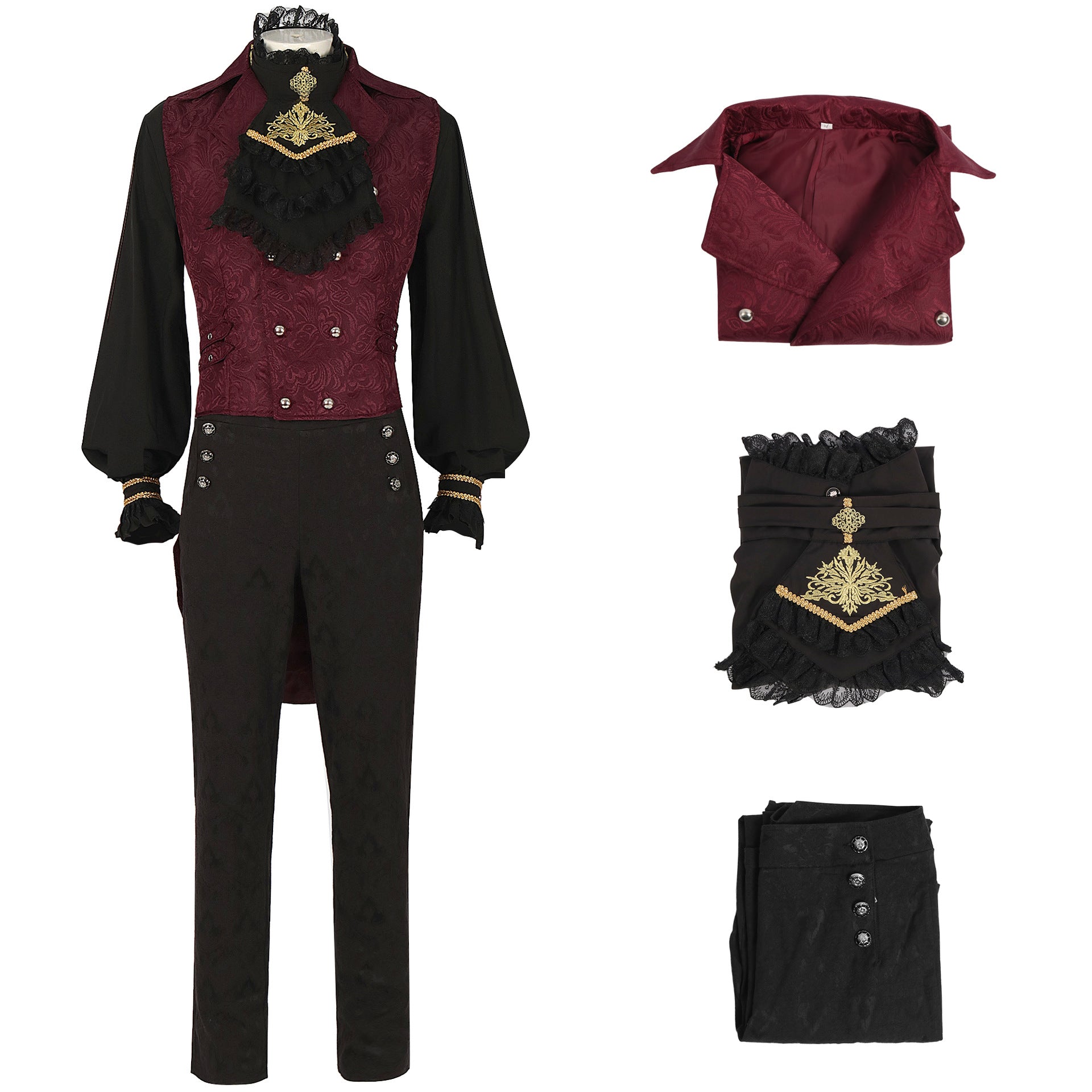 Men's Pleated Shirt Medieval Costume Steampunk Victoria Inner Layer Top Waistcoat Pants
