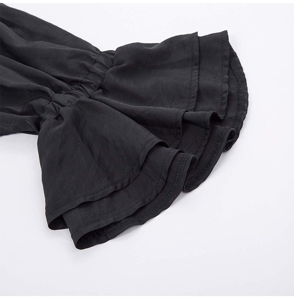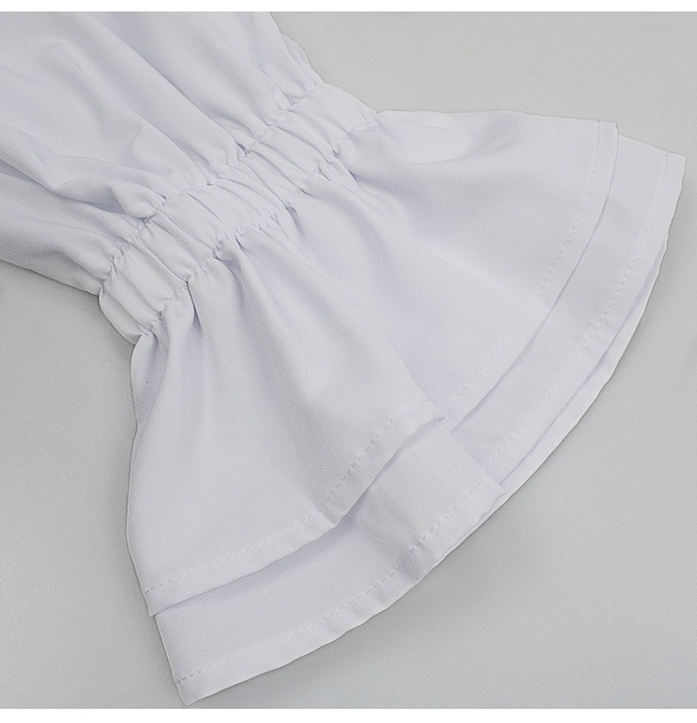 • Design: Long Sleeve, Lace Flared Cuffs, Ruffle Front, Solid Color, Retro Style.