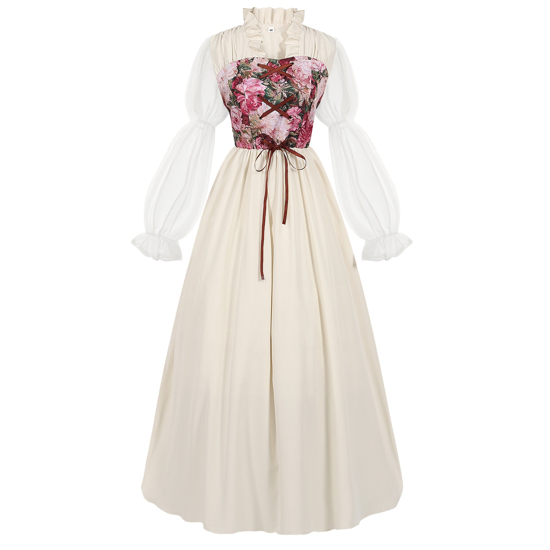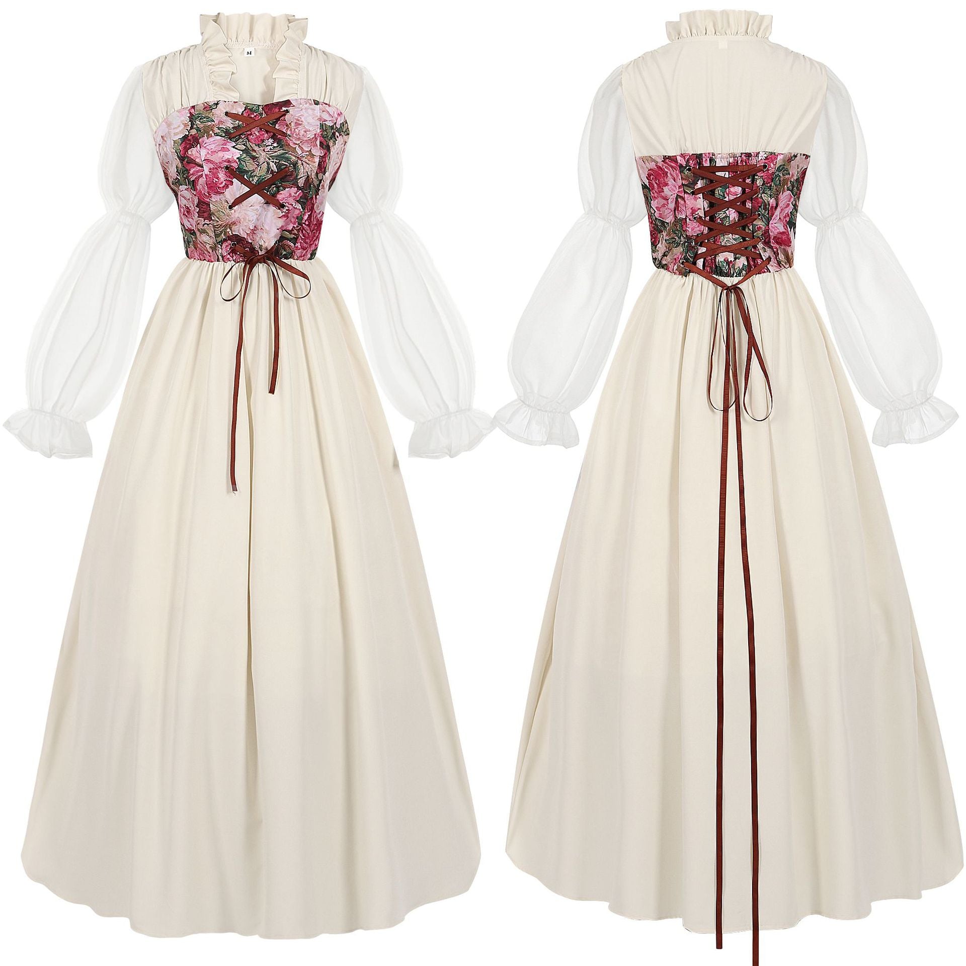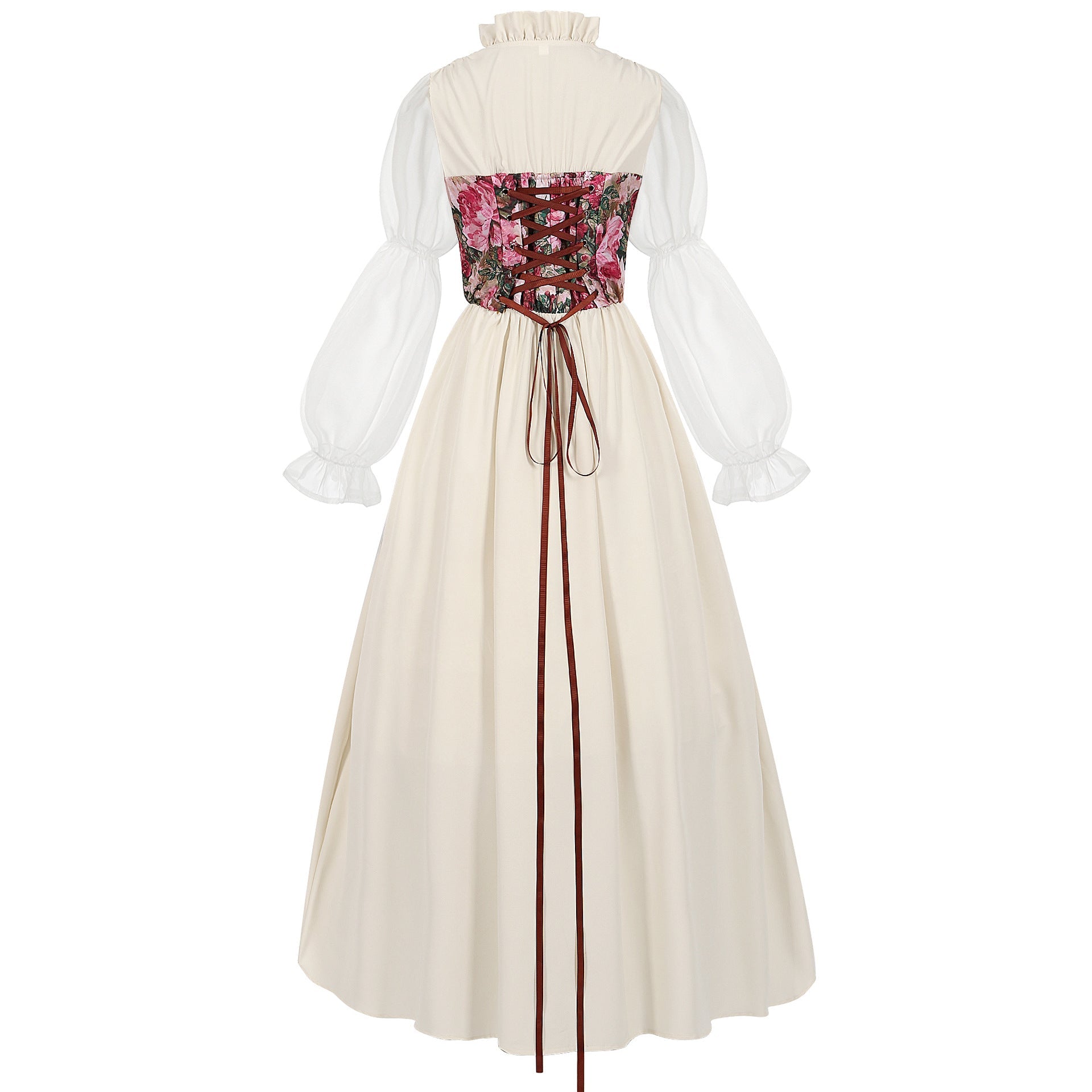Women's Victorian Renaissance Dress Vintage Medieval Noblewomen's Waist-Cinched Gown